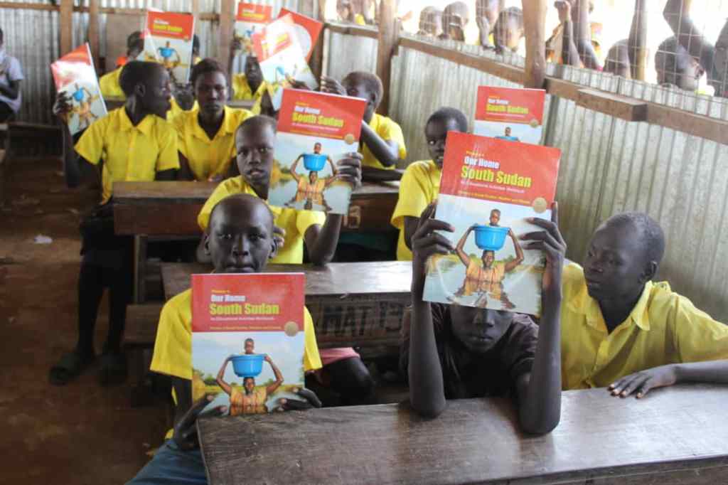 Below is the cover and the interiors of the workbook. The use of the cover photo was donated by Peter Canton, a renown photography of South Sudan.