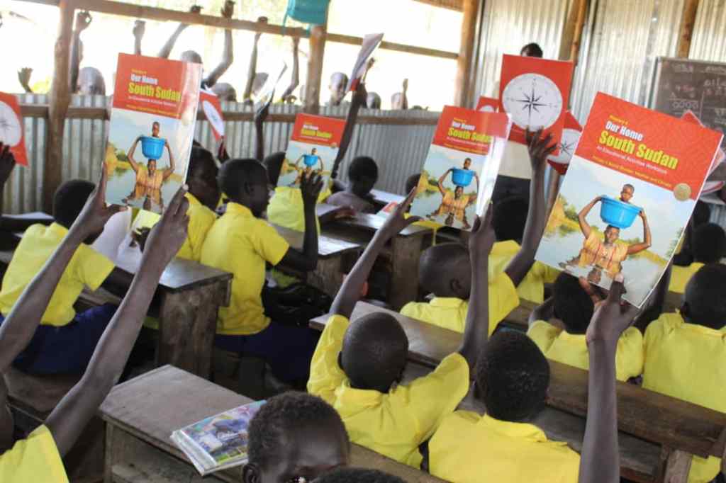 Once the workbook was designed, I emailed it to a commercial printer in Juba, South Sudan. There, they printed 500 copies of this workbook and I had a local person pick up the copies. Within one week, my “incountry helpers” had distributed the workbook to over 245 students across 7 schools in the Yei city region. The workbook is student-centered and full of engaging learning activities.